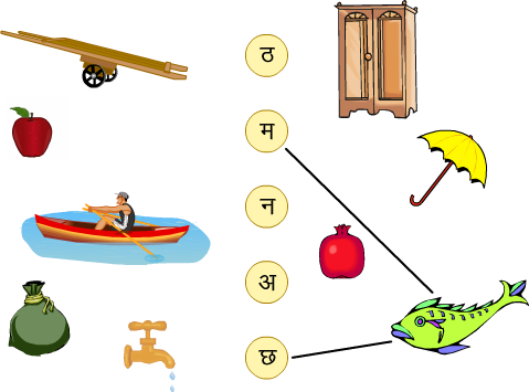 ऊपर बनी चीज़ों के नाम उन अक्षरों के नीचे लिखो जो उनमें आते हैं।
