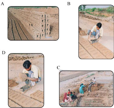 Here are four pictures from the brick kiln. These pictures are jumbled up. Look at them carefully.