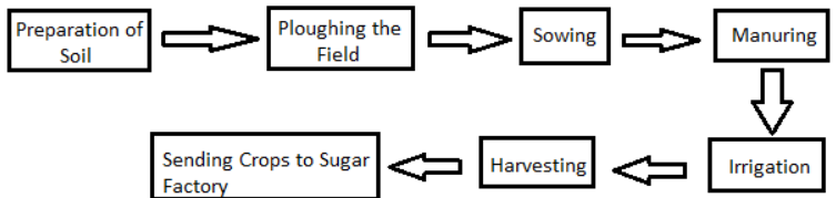 (b) Sowing is another important step in crop production. It is the process of placing the seed in or on the soil for future growth.The seeds that are selected for growing should be of good quality. This will improve the net yield of the crop. Sowing is usually done with the help of either a traditional tool or a seed drill. The traditional tool is shaped like a funnel. It was used earlier for sowing seeds. Nowadays, seed drills that make the use of tractors are used for sowing seeds. This tool disperses seeds uniformly and sows seeds at proper depth. Sowing by this method saves time and also protects the seeds from birds.