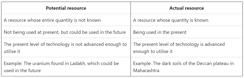 (a) Potential and actual resources