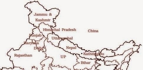1. On the following map mark out the route, which the author thought of but did not take, to Delhi.