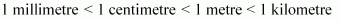 Hence, 1 mm is smaller than 1 cm, 1 cm is smaller than 1 m, and 1 m is smaller than 1 km, i.e.,