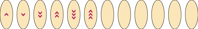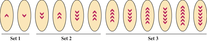 In 1st image, there is only 1 arrow head pointing in the upward direction. In 2nd image, there is only 1 arrow head and is pointing in the downward direction. In 3rd image, there are only 2 arrow heads pointing in the upward direction. In 4th image, there are only 2 arrow heads pointing in the downward direction.