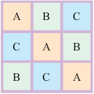Now you try writing the letters — A, B, C in the box so that no letter comes twice in any line.