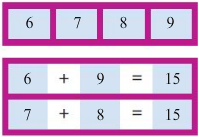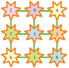Now you fill these stars. Use numbers 1 – 9 and the rule that the numbers on each line add up to 15.