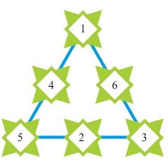 Now use numbers 1 – 6 to make your own magic triangle. Rule: Numbers on each side must add up to 10.