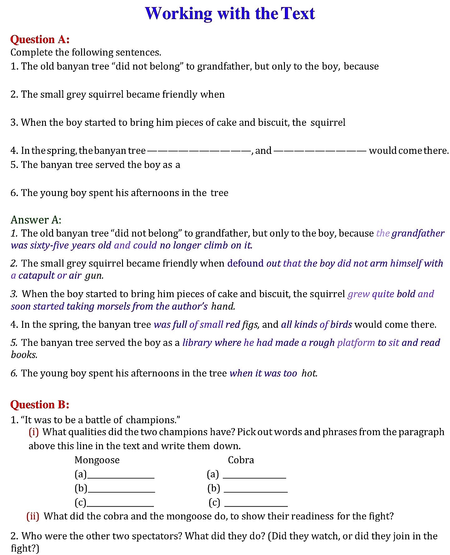 NCERT Solutions for class 6 English Honeysuckle chapter 10 – The Banyan Tree by RUSKIN BOND