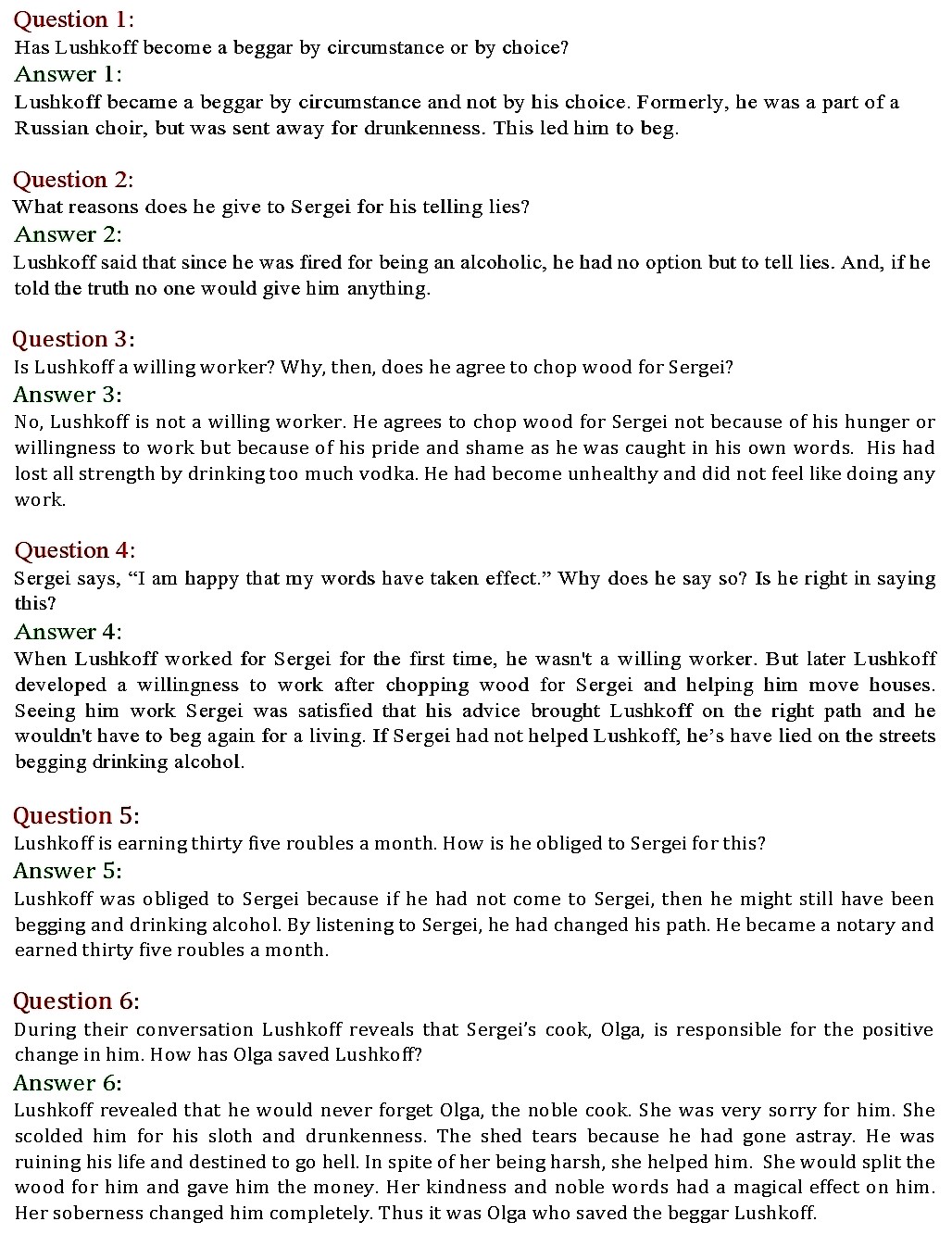 NCERT Solutions for class 9 English Supplementary Moments chapter 10 – The Beggar by Anton Chekhov