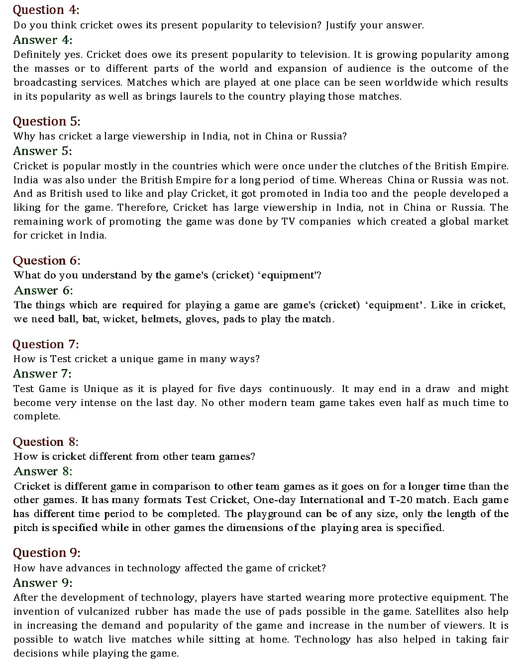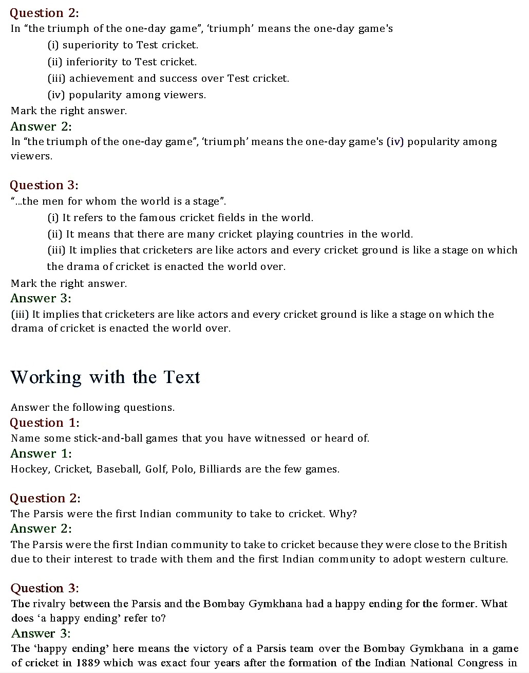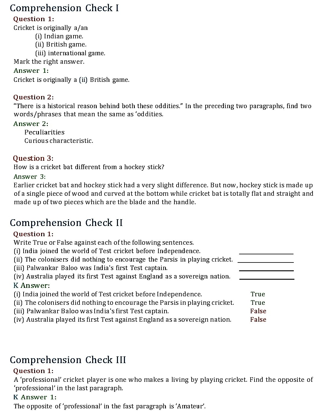 NCERT Solutions for class 7 English Honeycomb chapter 10 – The Story of Cricket by RAMACHANDRA GUHA