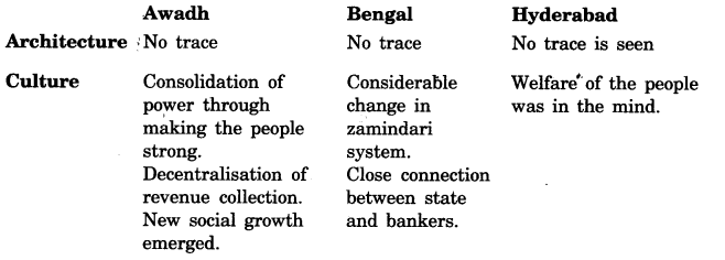 Find out more about the architecture and culture associated with the new courts of any of the following Awadh, Bengal or Hyderabad.