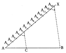 3. Along AX, locate 13 (5 + 8) points A1, A2, A3, …… , A13 such that AA1 = A1A2 = ……… = A12A13