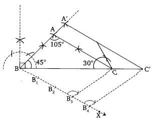 Draw a triangle ABC with side BC = 7 cm, ∠B = 45°, ∠A = 105°. Then, construct a triangle whose sides are times the corresponding sides of ∆ABC.