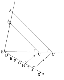 8. Through C’, draw a line A’C’ parallel to CA, intersecting the extended line segment BA at A’.