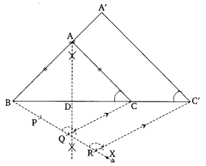 5. Through R, draw a line RC parallel to QC, meeting produced line BC at C’.