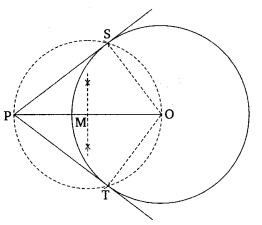 4. With center M and radius PM = MO, draw a circle which cuts the given circle at S and T.