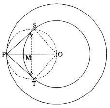 4. With center Mand radius MP = OM. draw a circle which intersects the smaller circle at S and T.