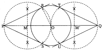 Thus, we have PR and PS as a pair of tangents from P and OT and QU as another pair of tangents from Q drawn to the given circle.