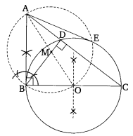 4. With O as a center and OB radius, draw a circle which intersects the side AC of ∆ABC at D.