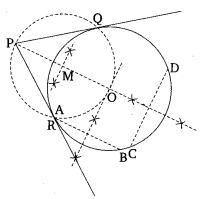 2. Produce the diameter of the circle to both the ends up to P and such that OP = OQ = 7 cm