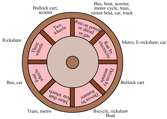 Which vehicles have you travelled in ? Write their names in your notebook.