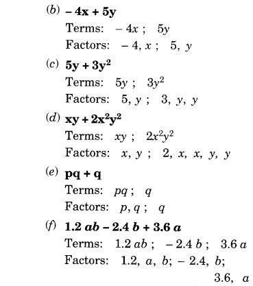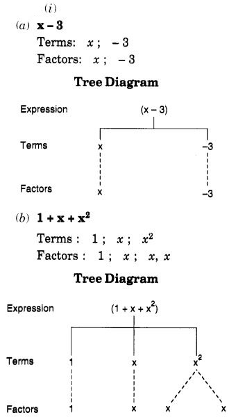 (i) Identify the terms and their factors in the following expressions. Show the terms and factors by tree diagrams :