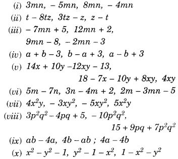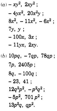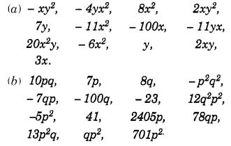 We know that an algebraic expression containing only one term is called a monomial. So, the monomials are : (ii), (iv), and (viii).