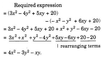 What should be taken away from 3x2 – 4y2 + 5xy + 20 to obtain -x2 – y2 + 6xy + 20?