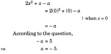 What should be the value of a if the value of 2x2 + x – a equals to 5, when x = 0 ?
