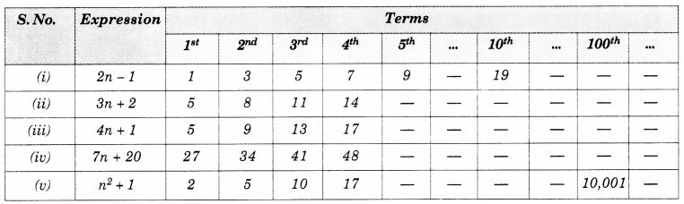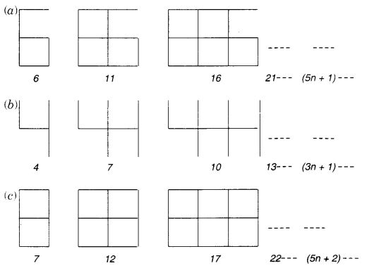If the number of digits formed is taken to be n, the number of segments required to form n digits is given by the algebraic expression appearing on the right of each pattern.