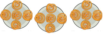 Now draw the jalebis on the plates below, so that each plate has the same number of jalebis.