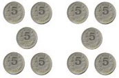 They shared them equally. Each friend got ten rupees. 50 ÷ 5 = 10
