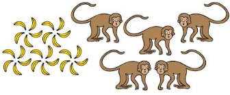 ______ ÷ 5 = ______ Each monkey has _________ bananas.
