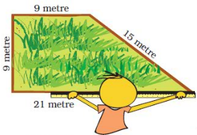 (c) Length of the boundary = 9 m + 12 m + 15 m = 36 m Boundary = 36 metre
