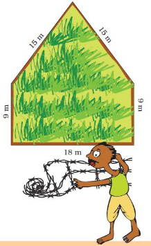 Length of the boundary of Ganpat’s field = 15 m + 15 m + 9 m + 18 m + 9 m = 66 m Rahmat gave 16 m wire to Ganpat for fencing his field. Length of wire now needed by Ganpat for fencing his field = 66 m − 16 m = 50 m Working: 66-1650 Thus, Ganpat will require 50 more metres wire for his field.