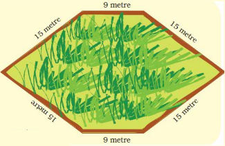 (d) Length of the boundary = 9 m + 15 m + 15 m + 9 m + 15 m + 15 m = 78 m Boundary = 78 metre
