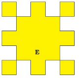(b) 8 squares of side 1 cm are cut out of the square D. Now it looks like shape E. What is the length of the boundary of shape E?