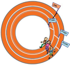 • Usually circular tracks have different starting point because the radius of the track of the different runner are different.