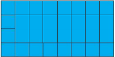The blue rectangle can be filled with 32 squares of one centimetre.
