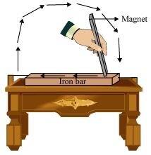 Then, the bar magnet is lifted from the other end and brought to the starting point again with the same pole of the bar magnet. On repeating the process for at least 40 to 50 times, the iron strip will become a bar magnet with two poles.