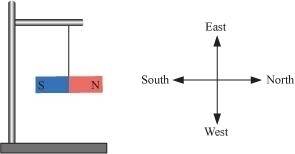 A freely suspended bar magnet always comes to rest in the North−South direction. The north facing end of the magnet is its north pole, and the south facing end is its south pole (as shown in the given figure).
