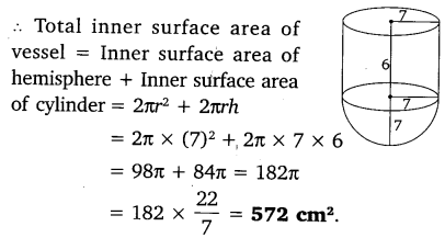 A vessel is in the form of a hollow hemisphere mounted by a hollow cylinder. The diameter of the hemisphere is 14 cm and the total height of the vessel is 13 cm. Find the inner surface area of the vessel.
