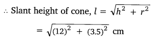 Height of cone, h = 15.5 - 3.5 = 12 cm