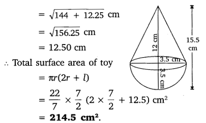 A toy is in the form of a cone of radius 3.5 cm mounted on a hemisphere of same radius. The total height of the toy is 15.5 cm. Find the total surface area of the toy.