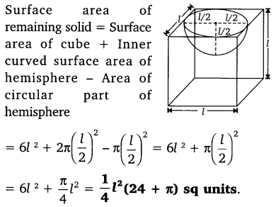 A hemispherical depression is cut out from one face of a cubical wooden block such that the diameter l of the hemisphere is equal to the edge of the cube. Determine the surface area of the remaining solid.
