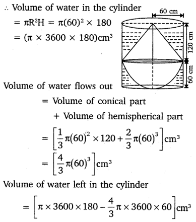 A solid consisting of a right circular cone of height 120 cm and radius 60 cm standing on a hemisphere of radius 60 cm is placed upright in a right circular cylinder full of water such that it touches the bottom. Find the volume of water left in the cylinder, if the radius of the cylinder is 60 cm and its height is 180 cm.