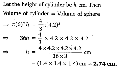 A metallic sphere of radius 4.2 cm is melted and recast into the shape of a cylinder of radius 6 cm. Find the height of the cylinder.