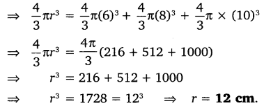 Metallic spheres of radii 6 cm, 8 cm and 10 cm, respectively, are melted to form a single solid sphere. Find the radius of the resulting sphere.