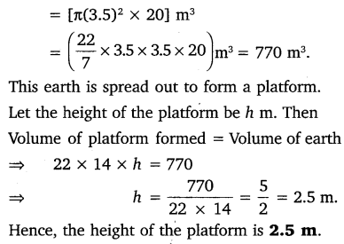 A 20 m deep well with diameter 7 m is dug and the earth from digging is evenly spread out to form a platform 22 m by 14 m. Find the height of the platform.