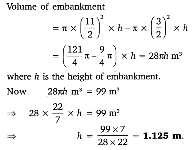 A well of diameter 3 m is dug 14 m deep. The earth taken out of it has been spread evenly all around it in the shape of a circular ring of width 4 m to form an embankment. Find the height of the embankment.