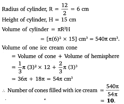 A container shaped like a right circular cylinder having diameter 12 cm and height 15 cm is full of ice cream. The ice cream is to be filled into cones of height 12 cm and diameter 6 cm, having a hemispherical shape on the top. Find the number of such cones which can be filled with ice cream.